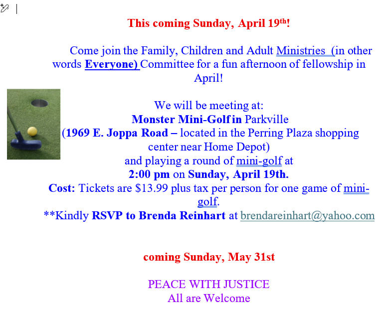 Visit tabs “About PHUMC ~ Bulletins” and “About PHUMC ~ Perry Hall SCOPE” to become acquainted with our church service format and happenings in the greater PHUMC Community.